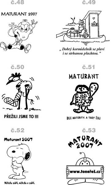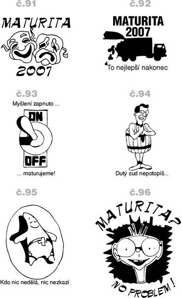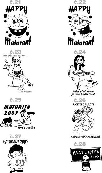 Již dávno se stalo tradicí, mít maturitní tričko. Pozor při jejich výběru. Vyžadujte vždy kvalitu. Nejvhodnější je tričko gramáže minimálně 130 g/m2 nebo 155 g/m2 Většina dívek vyžaduje trička uplá či elastická. Elastická trička krom své vyšší ceny dělají též problémy při potisku. Barva při napínání trička praská a nažehlovací fólie se trhá. Lze to řešit objednávkou klasických triček v dětských velikostech XS a XXS. Žhavou novinkou letošní sezóny jsou pánská trička bez rukávů a dámská trička s krátkým rukávem či bez.