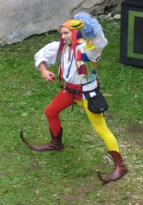 Souboj dřevcem a štítem přes hrazení, soupeři stojí na vyvýšených podstavcích Nebo Šerm hadrovým mečem na nízké kladině Nebo souboj molitanovým palcátem a štítem