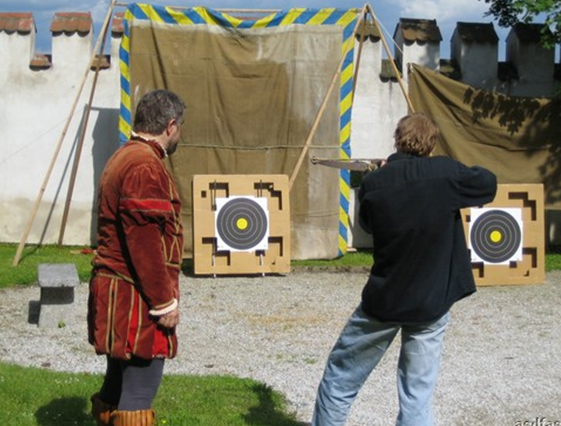 - Umění Viléma Tella a Robina Hooda - Střelba na vzdálenost cca 6 - 15 m z historické kuše a z luku