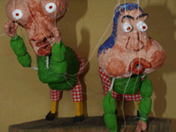 - Malý husita - Střelba z praku papírovými kuličkami na terčíky ? figury rytířů