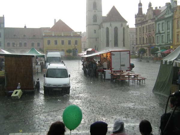 Večerní průtž mračen a následný přívalový déšť málem překazil část programu, ale zastřešené pódium a profesionální přístup zvukaře, hudebníků a organizátorů dovolil po krátké pauze pokračovat v programu.